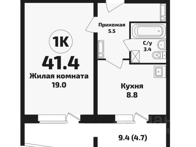 - Общая площадь 41.5 м2