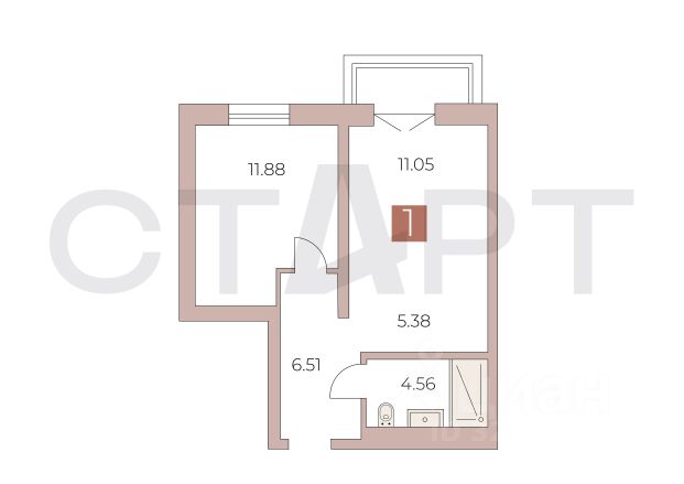 - Общая площадь 40.3 м2