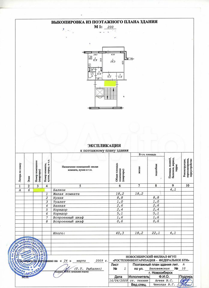 - Общая площадь: 40.3 м2
