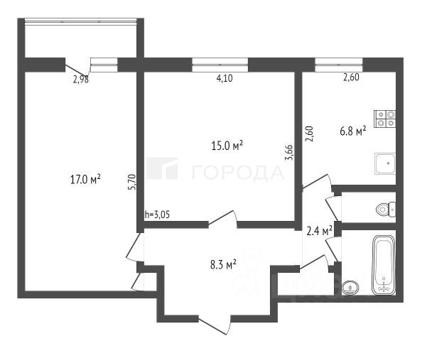- Общая площадь: 55 м2
