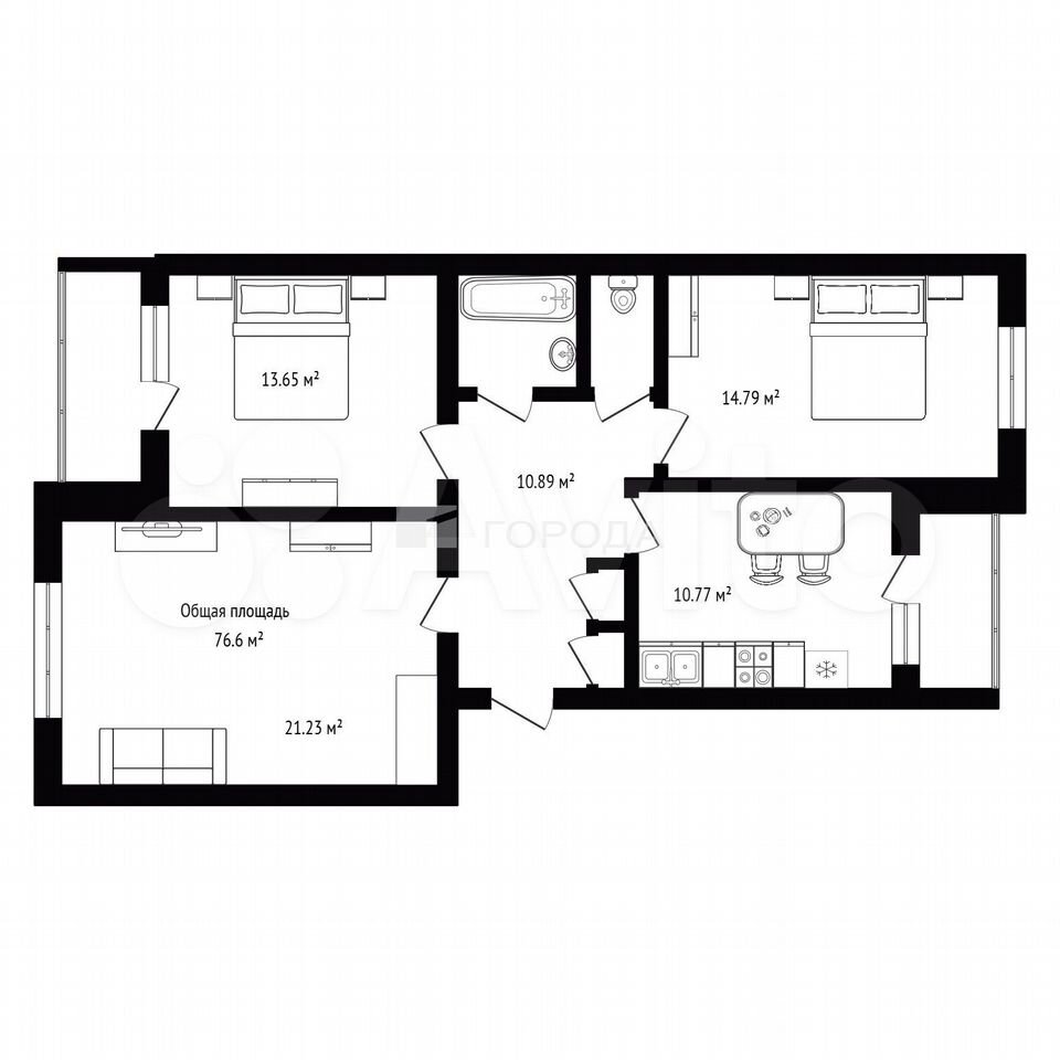- Общая площадь: 76.6 м2