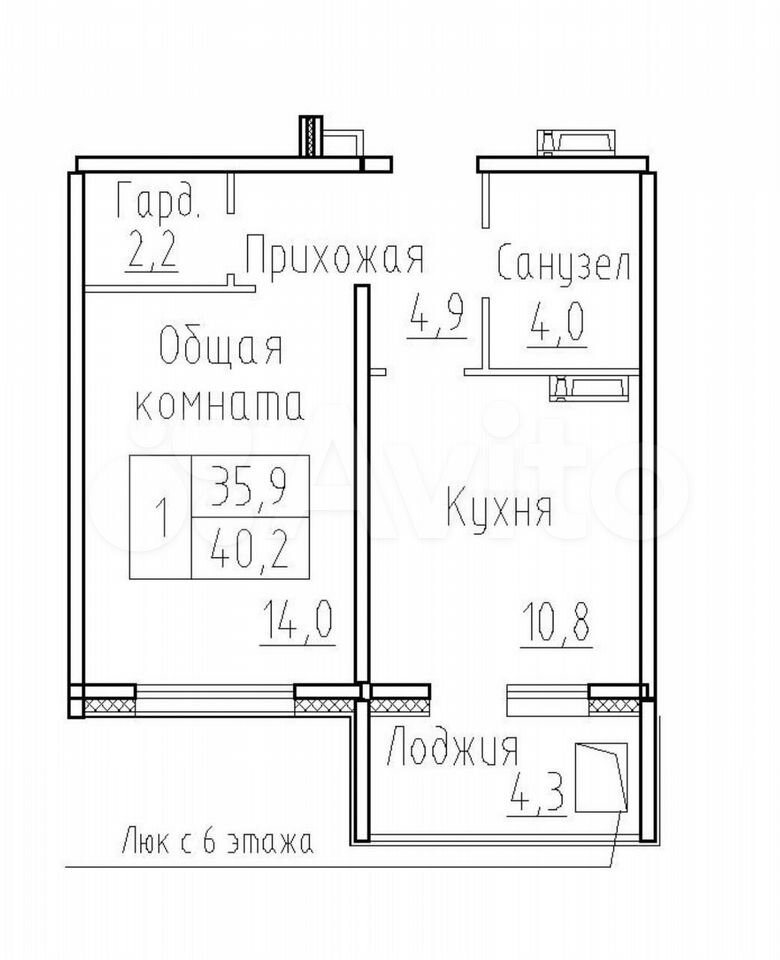- Общая площадь 40.2 м2