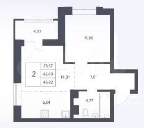 - Общая площадь: 46.6 м2