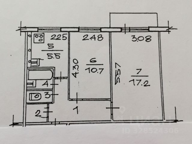 - Общая площадь: 43.6 м2