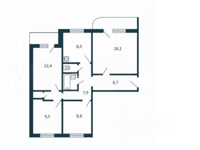- Общая площадь 75.3 м2
