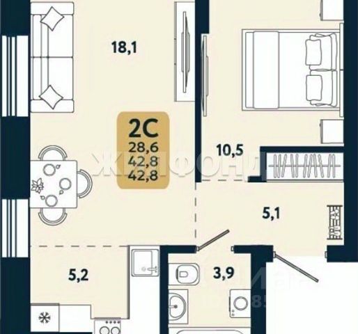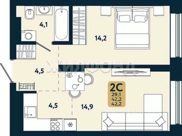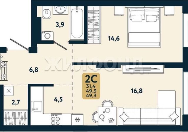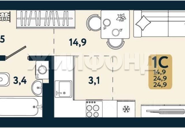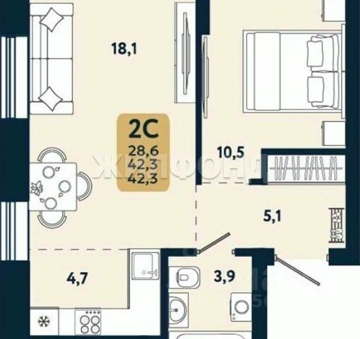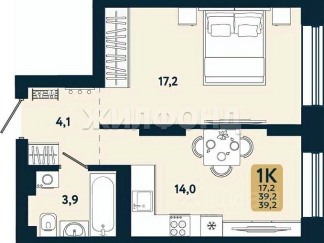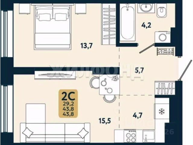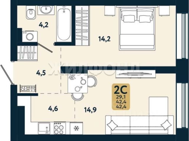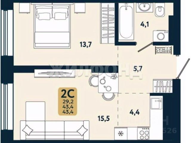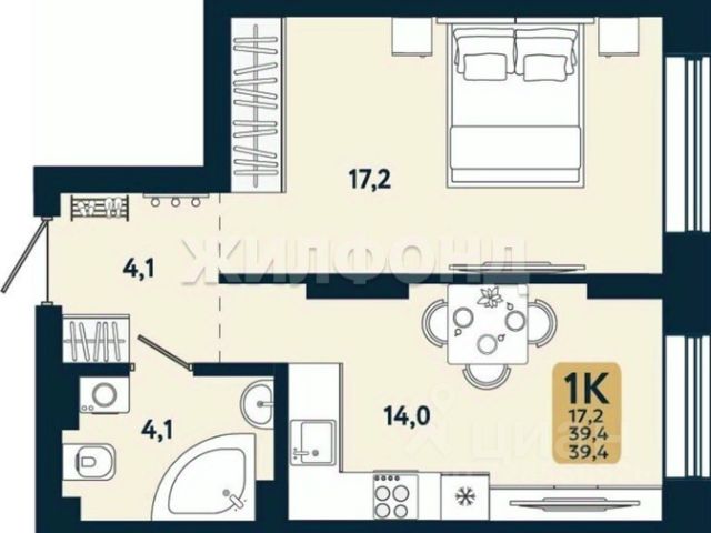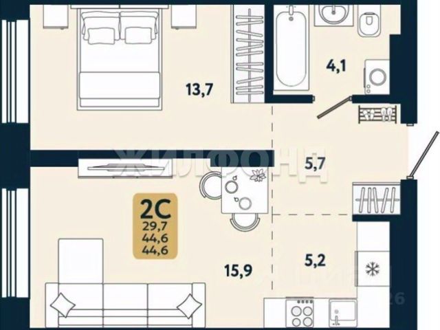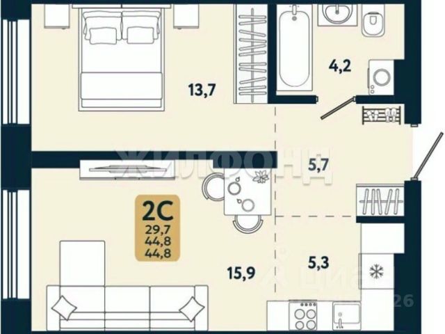 - Общая площадь: 29.4 м2