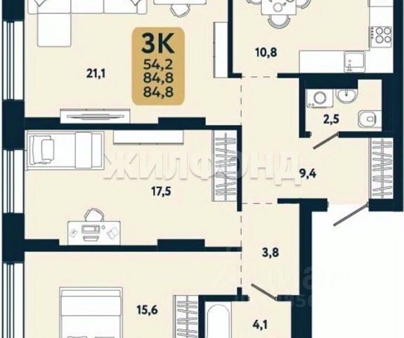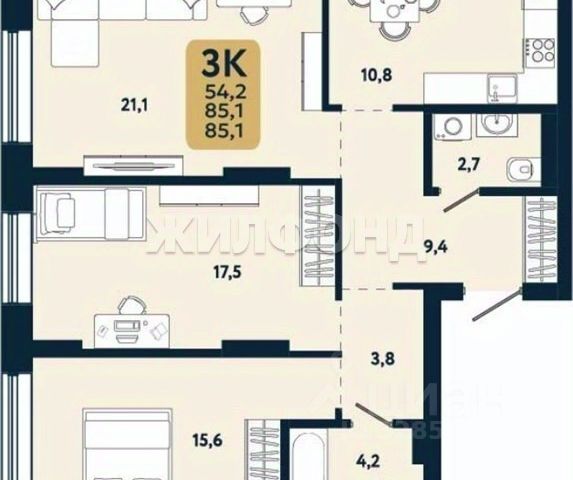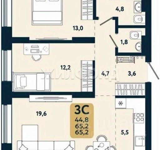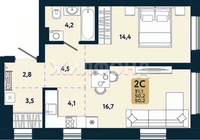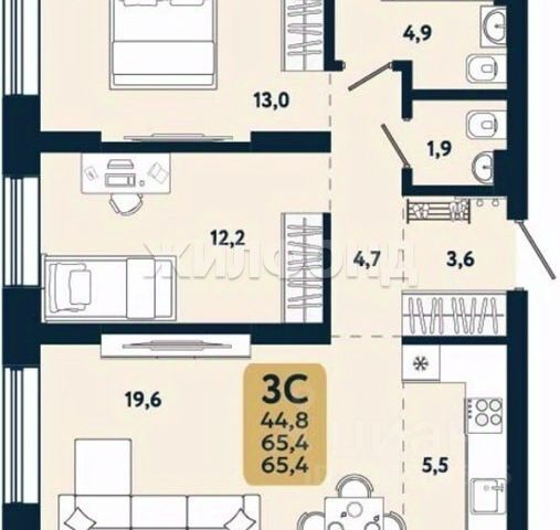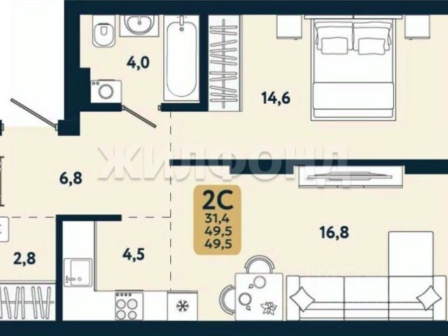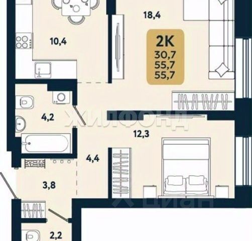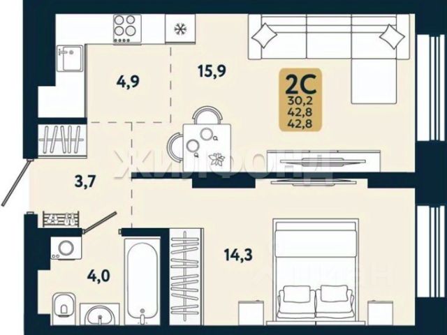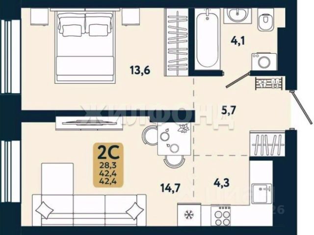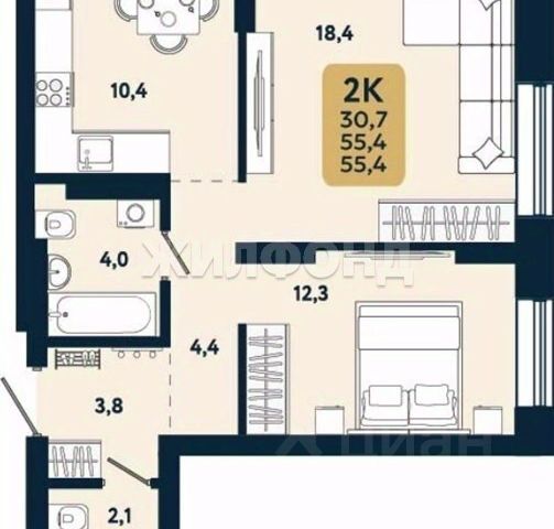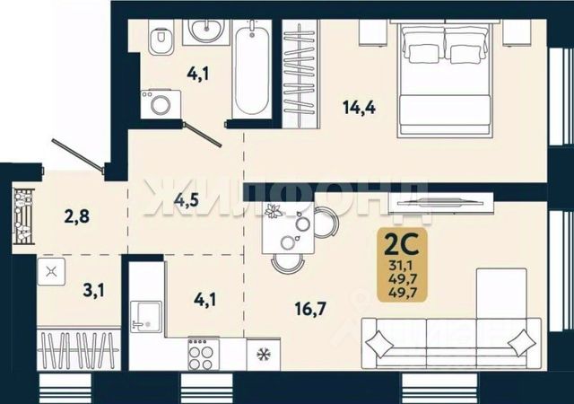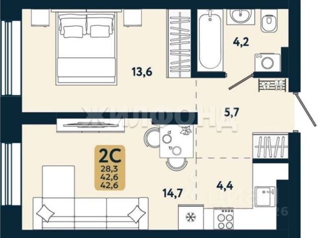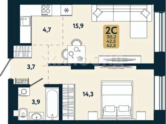 - Общая площадь: 29.4 м2