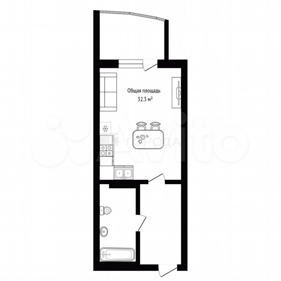 - Общая площадь 32.3 м2