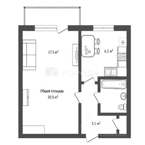 - Общая площадь: 30 м2