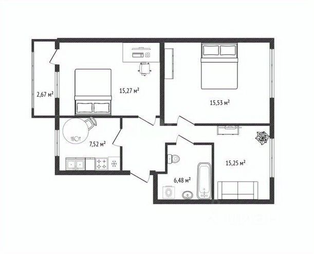 - Общая площадь: 63.2 м2