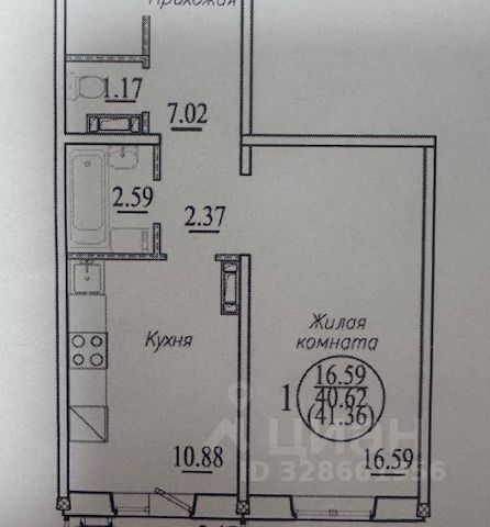 - Общая площадь 40.2 м2