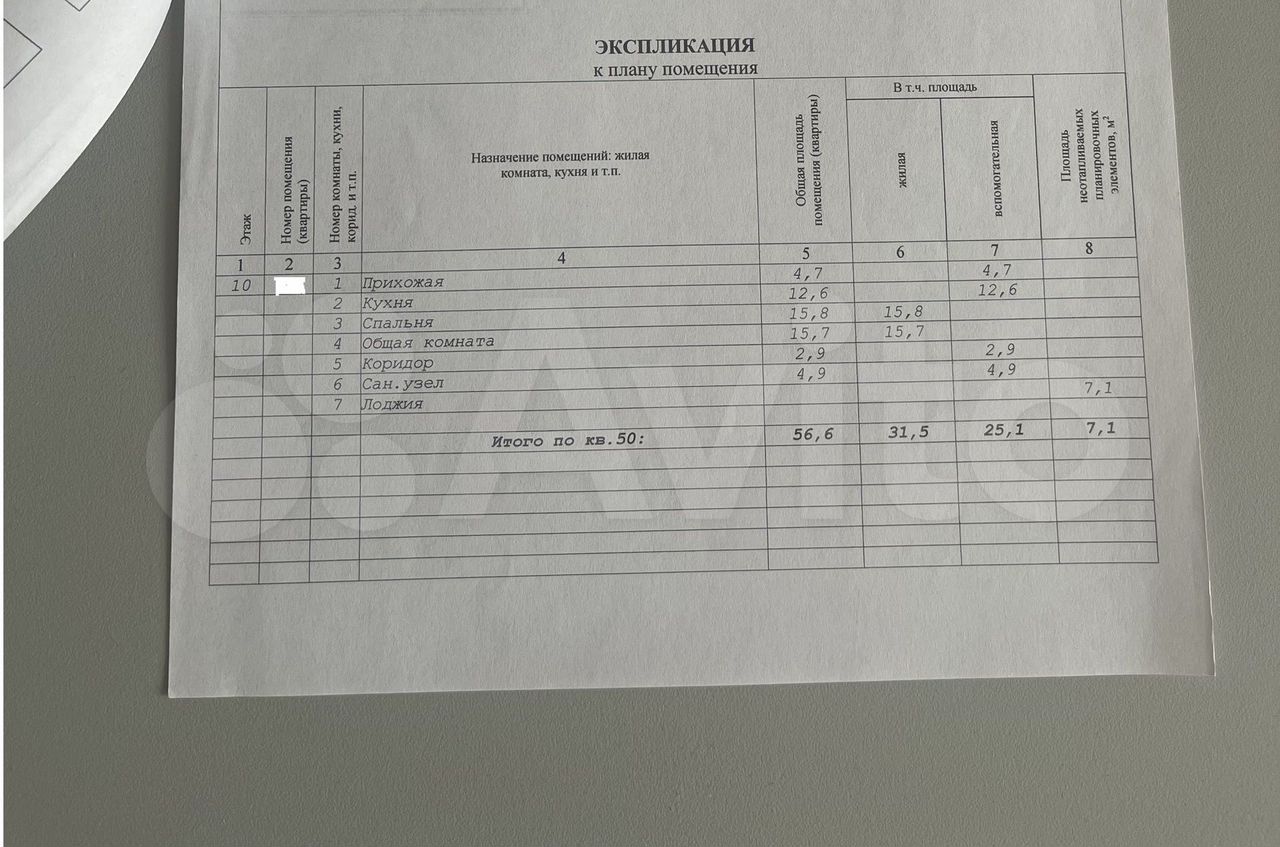 - Общая площадь: 56.6 м2