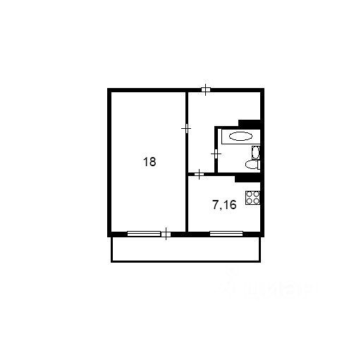 - Общая площадь 34.6 м2