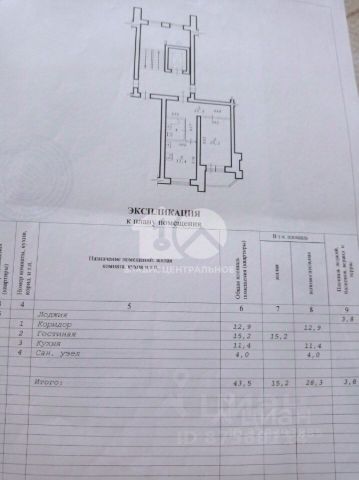 - Общая площадь 43.4 м2