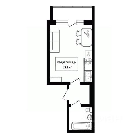 - Общая площадь 24.4 м2