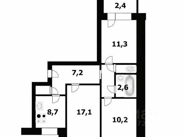 - Общая площадь: 62.9 м2
