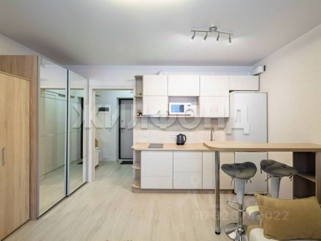 По объекту принят задаток.В продаже квартира-студия в микрорайоне Никольский V наукограда Кольцово. О квартире: Квартира расположена на 3-м этаже 9-ти этажного кирпичного дома. В квартире выполнен качественный евроремонт в светлых тонах материалами европейских брендов. Кухня и мягкая мебель изготовлены по индивидуальному проекту. Окна выходят на благоустроенный двор с детскими и спортивными площадками. Огромная застекленная лоджия, которую можно использовать как для отдыха, так и для работы (есть освещение и электророзетки). Ремонт делали для себя: пол в комнате и прихожей кварц-винил, керамогранит Kеrаmа Mаrаzzi в с/узле , обои Mаrburg, электрика Lеgrаnd, сантехника Grоhе. Вся бытовая техника новая. Остается все, что видите на фото. Квартира полностью готова как к собственному проживанию, так и к сдаче в аренду. О доме: Дом комфорт-класса! Просторный холл оборудован лаунж-зоной с диваном для ожидания. Предусмотрено помещение для хранения колясок, велосипедов и зимнего инвентаря. Мусоропровод распологается в изолированной комнате. В доме на первом этаже расположены коммерческие помещения магазины, кафе, фитнес-центр, ПВЗ Озон. Под домом подземный паркинг. О районе: Современный микрорайон, обладающий всей необходимой инфраструктурой, в том числе и достаточным количеством парковочных мест. Остановка общественного транспорта рядос с домом. Через дорогу расположен Парк отдыха Кольцово. Также в шаговой доступности различные магазины, аптеки, кафе. Рядом детский сад, лицей, спортивные учреждения. Расположение Кольцово всего в 7 км от Академгородка. О документах: ВАЖНОЕ ПРЕИМУЩЕСТВО - документы с самой прозрачной историей: единственный собственник. Квартира покупалась у застройщика по ДДУ без привлечения кредитных средств и материнского капитала. Более 5-ти лет в собственности. Никто не прописан и не проживает. Долгов по коммунальным услугам нет. Ключи в день окончательного расчета. Чистая продажа, никаких длинных цепочек. Рядом с объектом находятся: 2 детских сада, 1 продуктовый магазин, 5 спортивных учреждений, 2 лицея. Комплексная услуга для покупателя с полной финансовой ответственностью агентства При звонке, пожалуйста, сообщите номер варианта - JV001054192221. Дополнительно оплачивается комиссия с покупателя. Пожалуйста, дождитесь ответа специалиста при звонке. Время дозвона до владельца объявления увеличено из-за использования подменных номеров на сайте Циан.