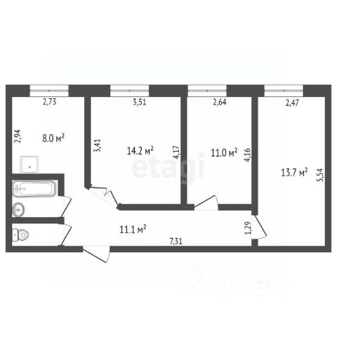 - Общая площадь: 61.9 м2