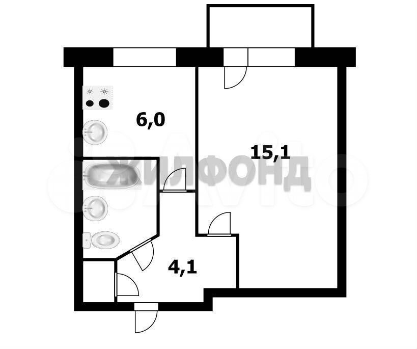 - Общая площадь: 29.1 м2