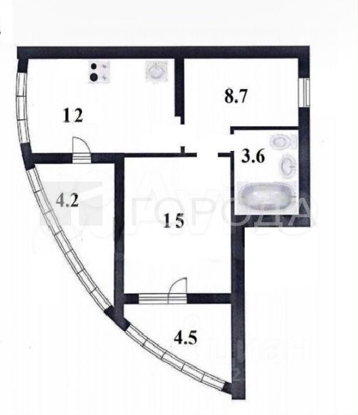 - Общая площадь: 37.6 м2
