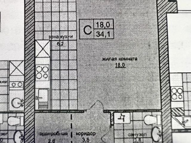 - Общая площадь: 34.1 м2