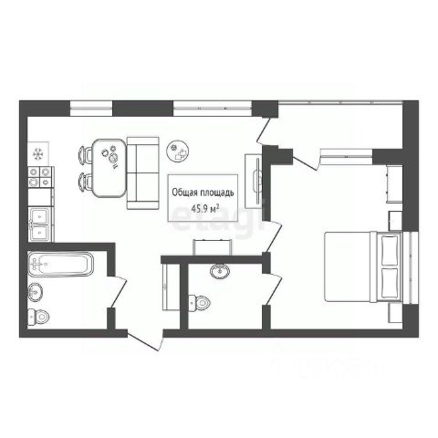- Общая площадь: 45.9 м2