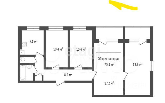 - Общая площадь: 72.9 м2