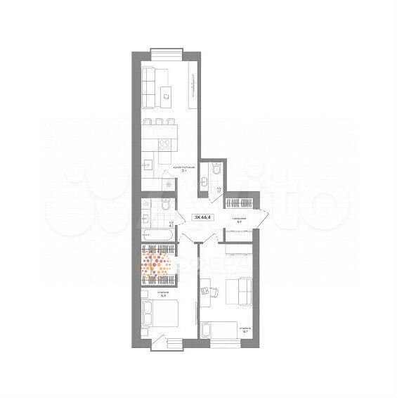 - Общая площадь: 66.4 м2