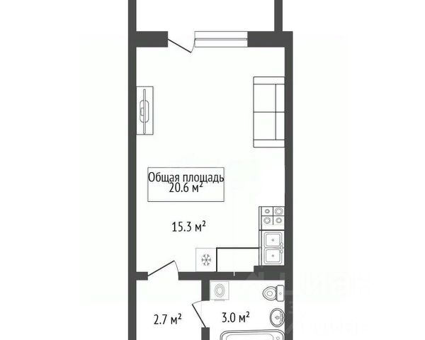 - Общая площадь: 20.6 м2