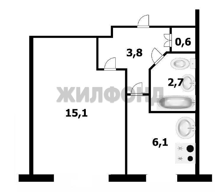 - Жилая площадь: 15.1 м2