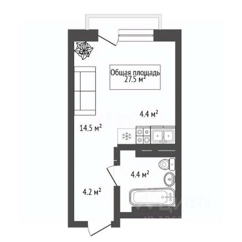 - Общая площадь: 27.5 м2