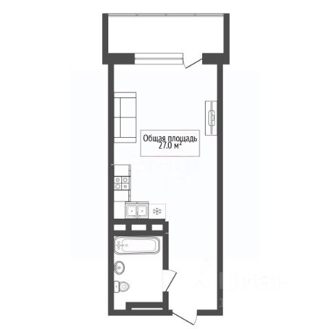- Общая площадь: 27 м2