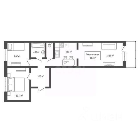 - Общая площадь: 66.8 м2