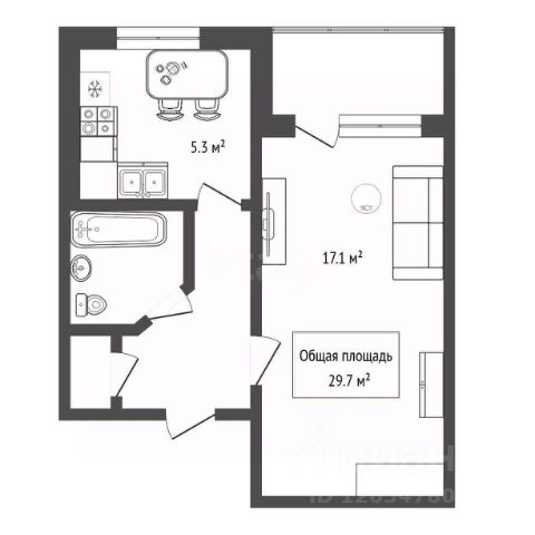 - Общая площадь: 29.7 м2