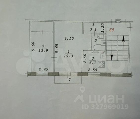 - Общая площадь: 45.4 м2