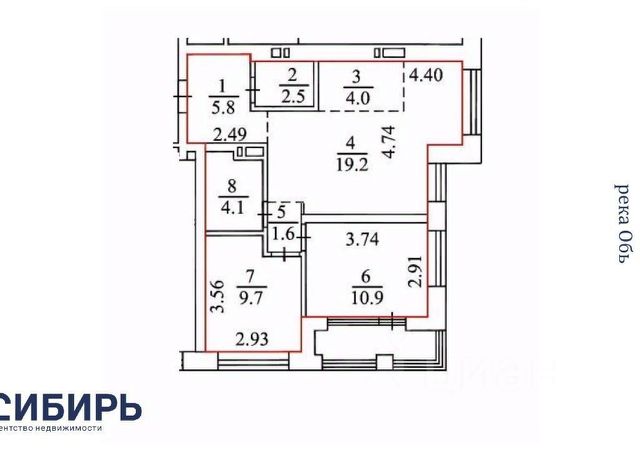- Общая площадь 57.8 м2