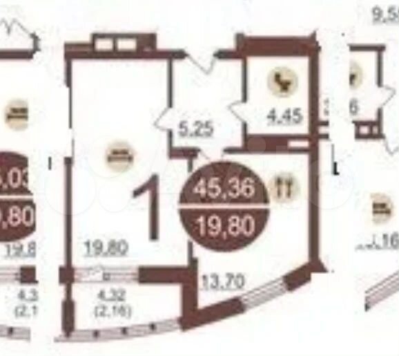 - Общая площадь: 41.6 м2