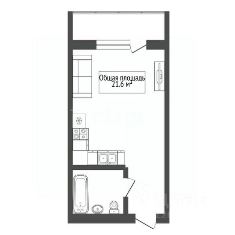 - Общая площадь 21.6 м2