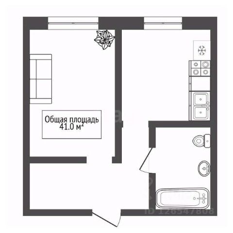 - Общая площадь: 41 м2