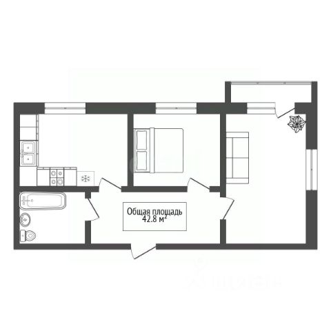 - Общая площадь 42.8 м2