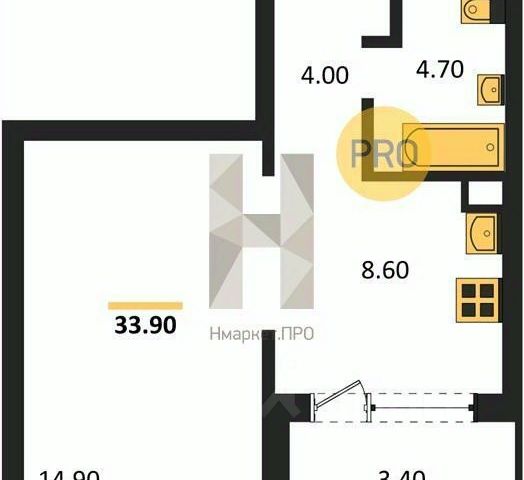 - Общая площадь: 33.9 м2