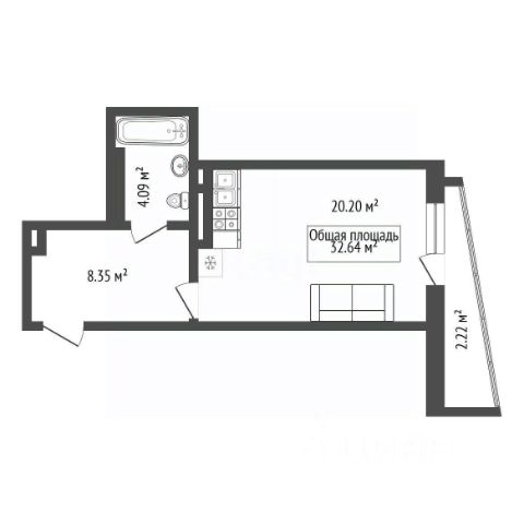 - Общая площадь: 32.6 м2