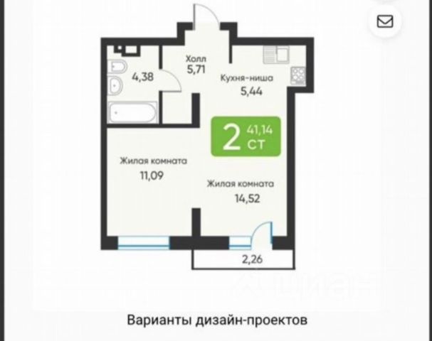 - Общая площадь: 42 м2