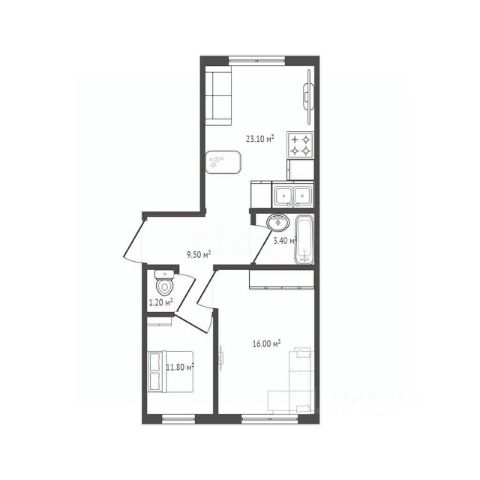 - Общая площадь: 63 м2