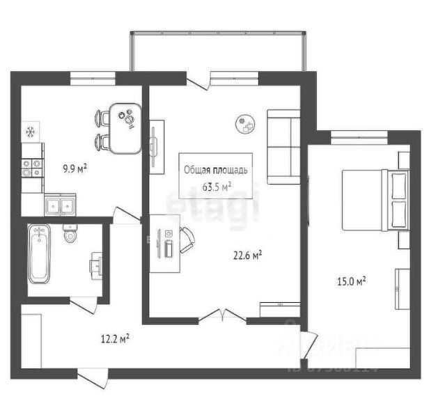 - Общая площадь: 63.5 м2