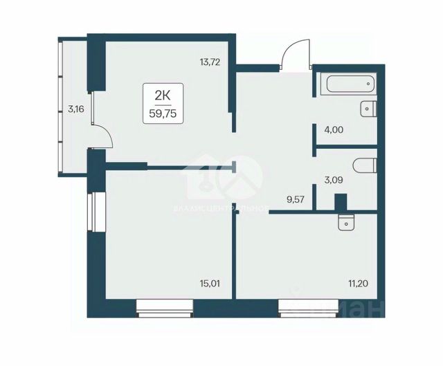 - Общая площадь: 59.6 м2