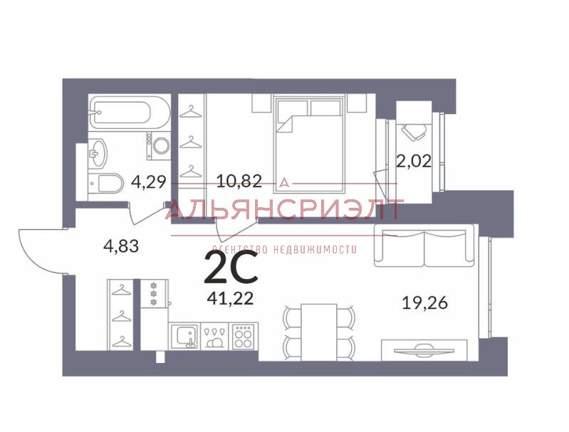 - Общая площадь: 41.2 м2