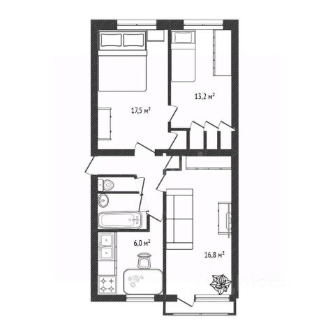 - Общая площадь 63.2 м2