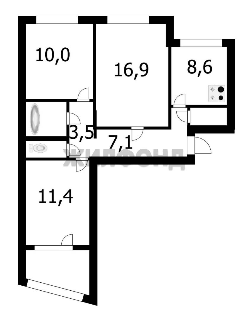 - Площадь кухни: 9 м2