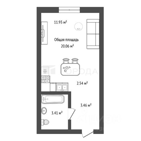 - Общая площадь 20.1 м2